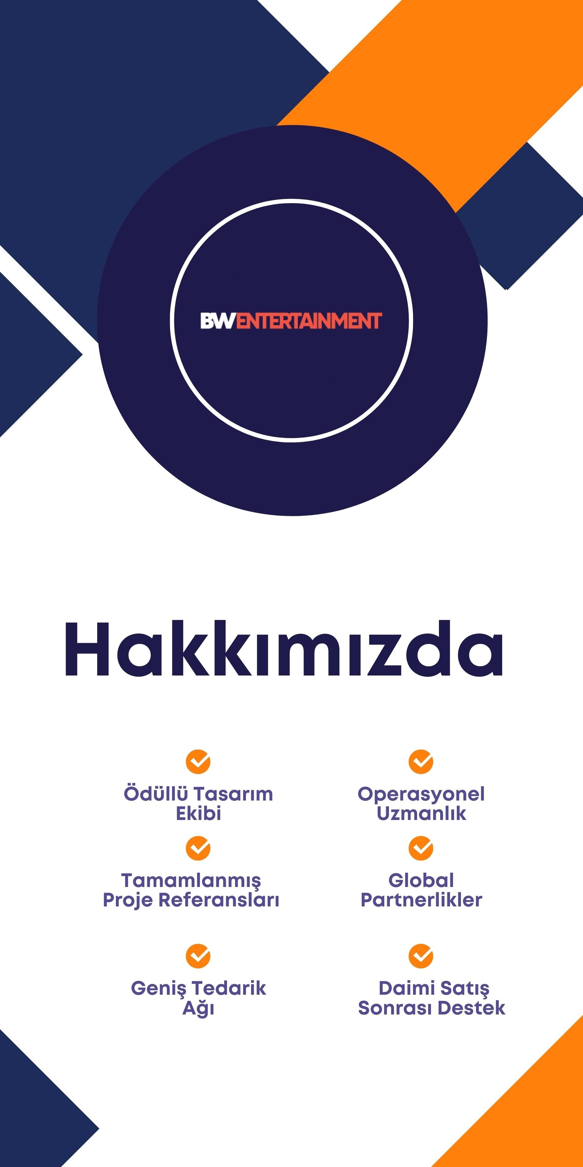 BW Entertainment’ın misyonu; güvenilir, yenilikçi, profesyonel ve çözüm odaklı hizmet anlayışıyla sektörde fark yaratarak işletmelere sadece ürün değil, komple bir sistem, çalışma düzeni ve iş modeli sunmaktır. Hedefimiz, eğlence sektörüne değer katmak ve bulunduğumuz tüm projelerde yüksek standartların temsilcisi olmaktır.